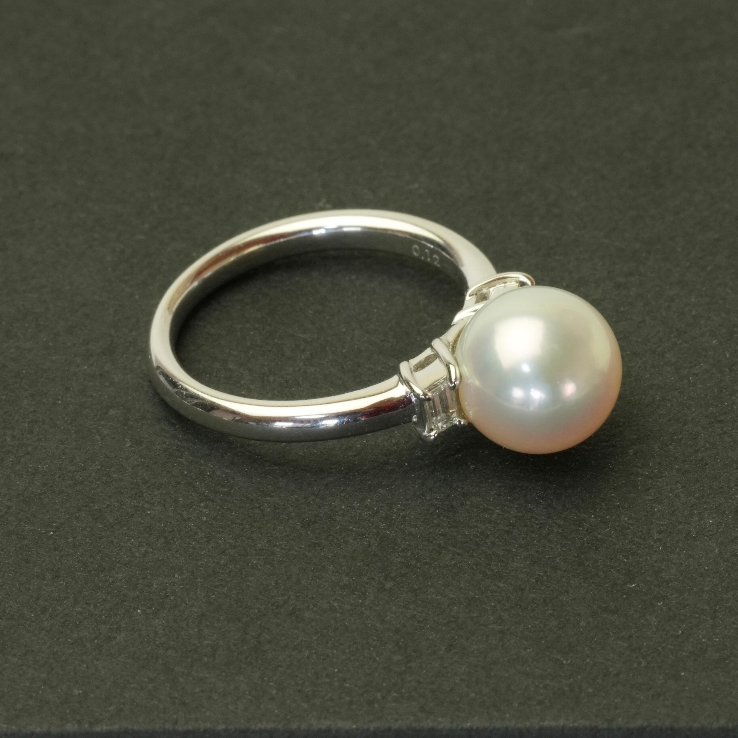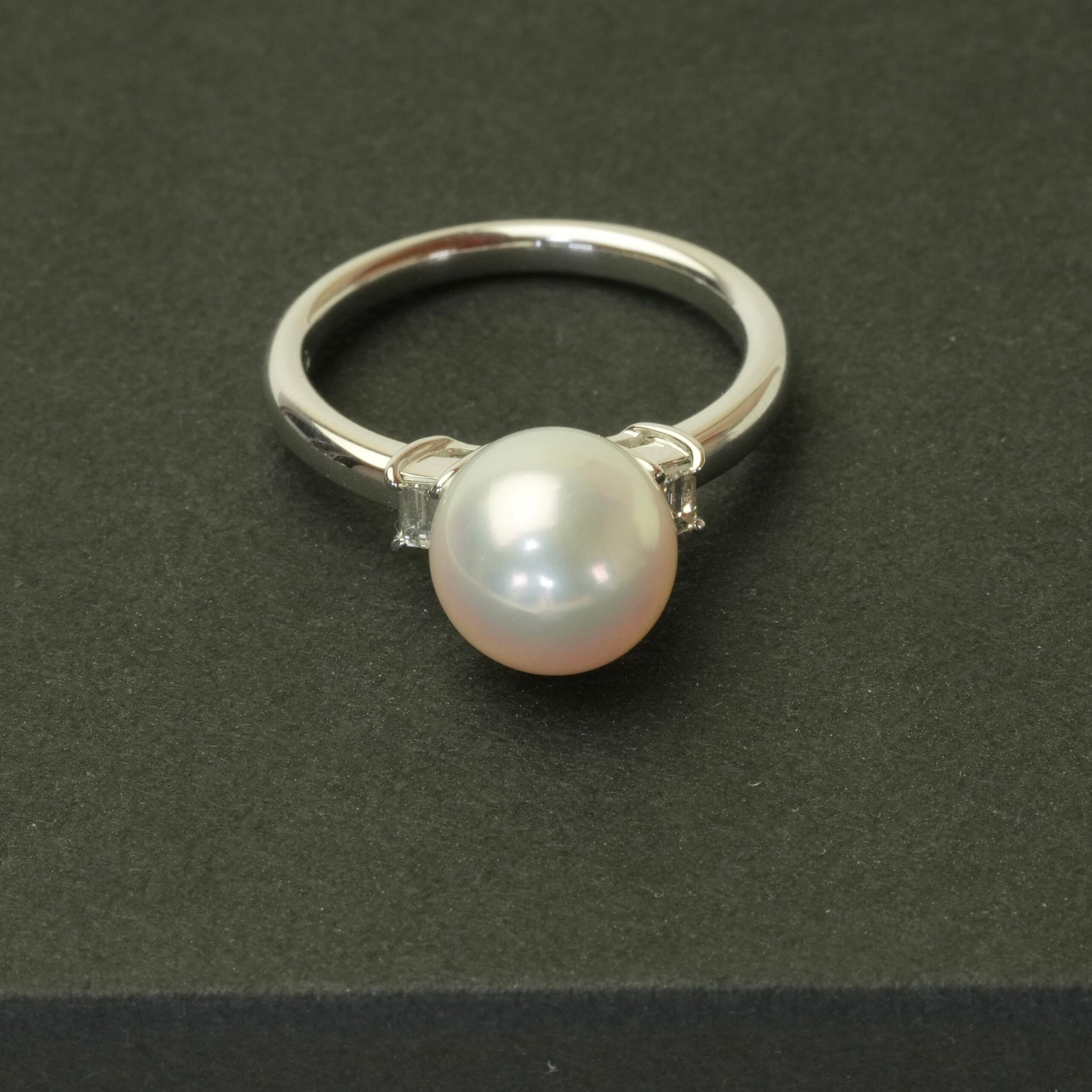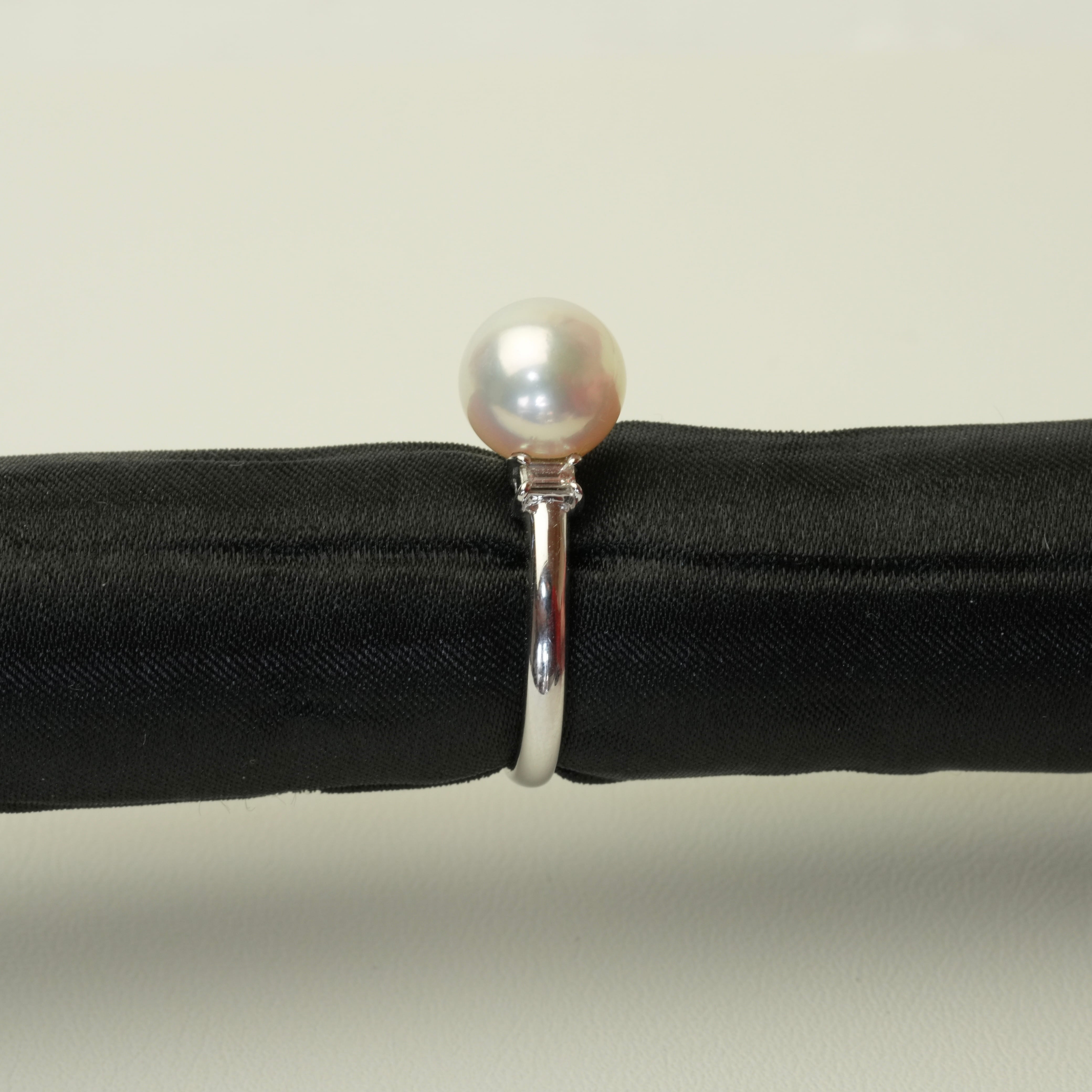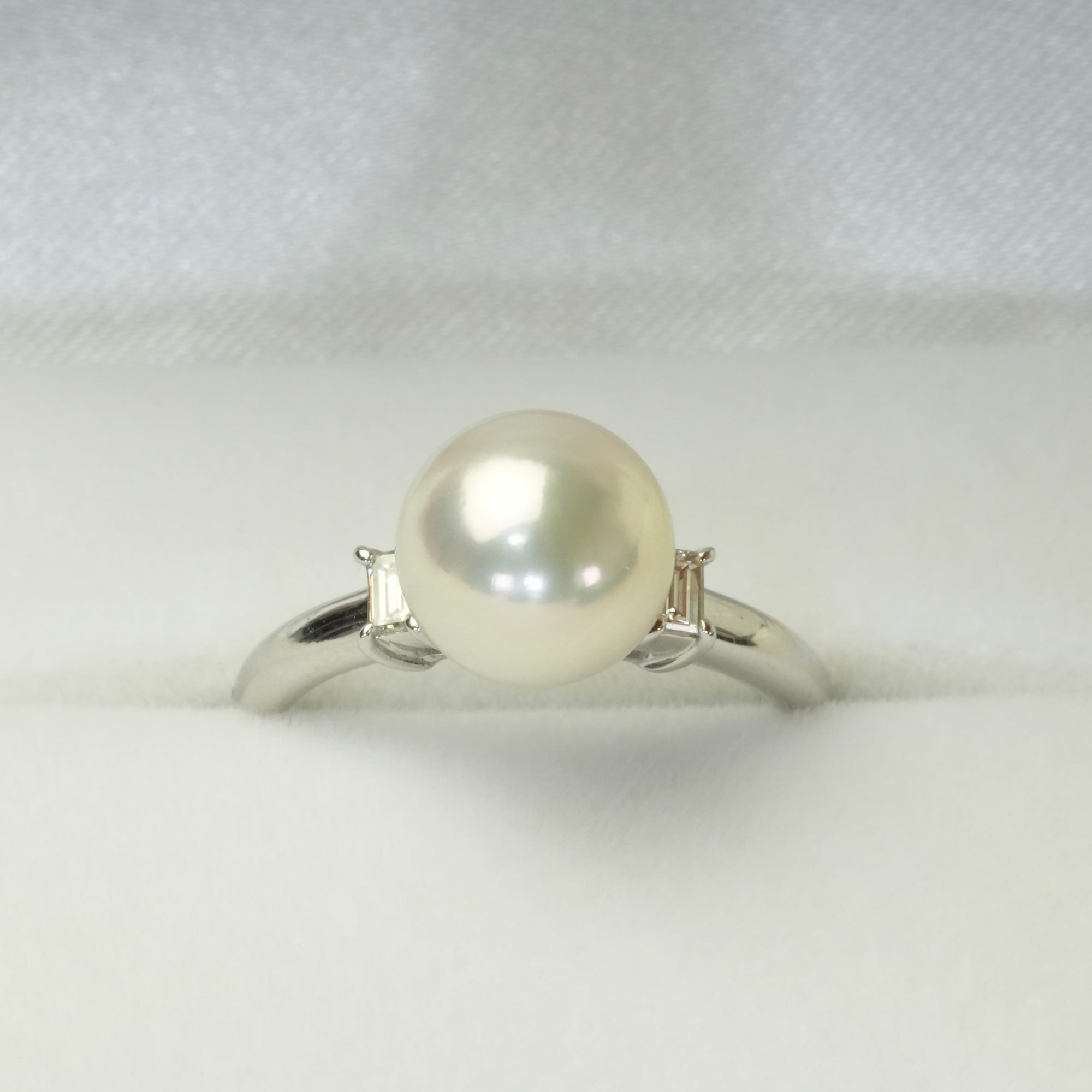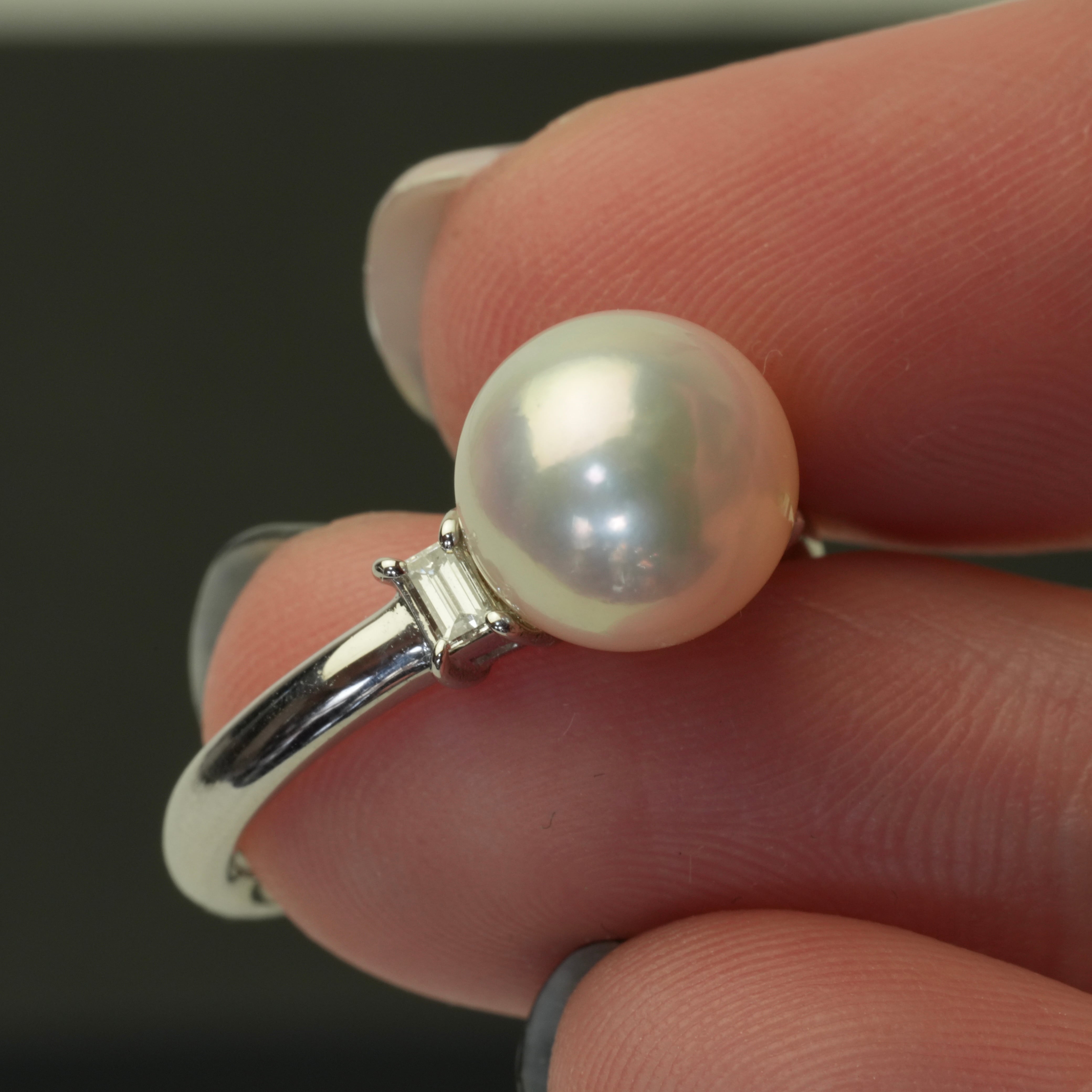 形はとても綺麗なラウンドです。こちらの真珠には真珠科学研究所さんが発行された【オーロラ花珠鑑別書】が付属しますが、まき厚0.70mmという評価をされており、奥深い真珠層の巻きが手元で楽しめる作品です。