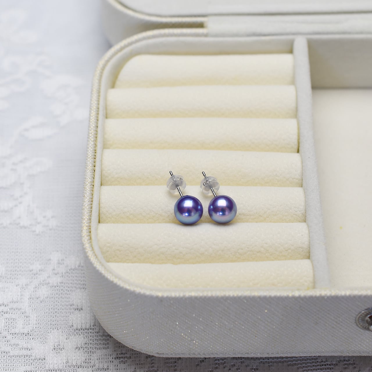 こちらの真珠はあこや真珠に染色加工を施したものになります。あこや真珠で8mmというのは大きめの部類で、真珠が採れなくなっていることもあり貴重なサイズです。