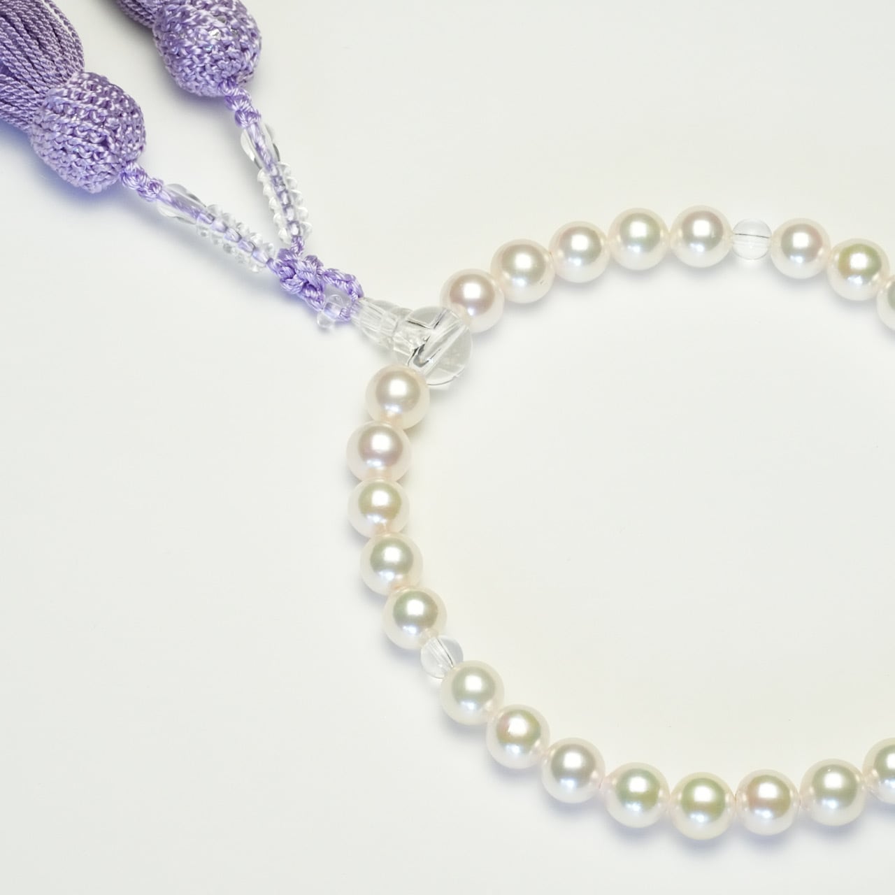品質の良いあこや真珠を用いて製作した念珠・お数珠です。