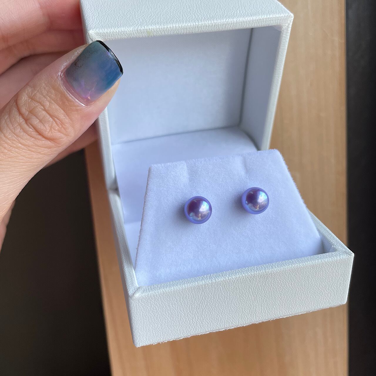 あこや真珠 7.0-7.5mm シンプルスタッドピアス ラベンダーカラー