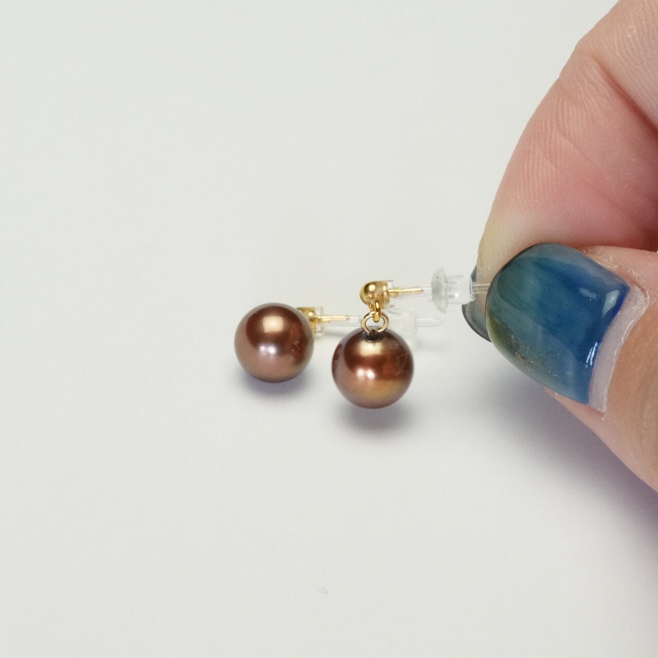 パールのサイズは一般的に流通しやすいサイズ感で、発色の良いショコラカラーなので耳元に彩りをプラスすることができます。
