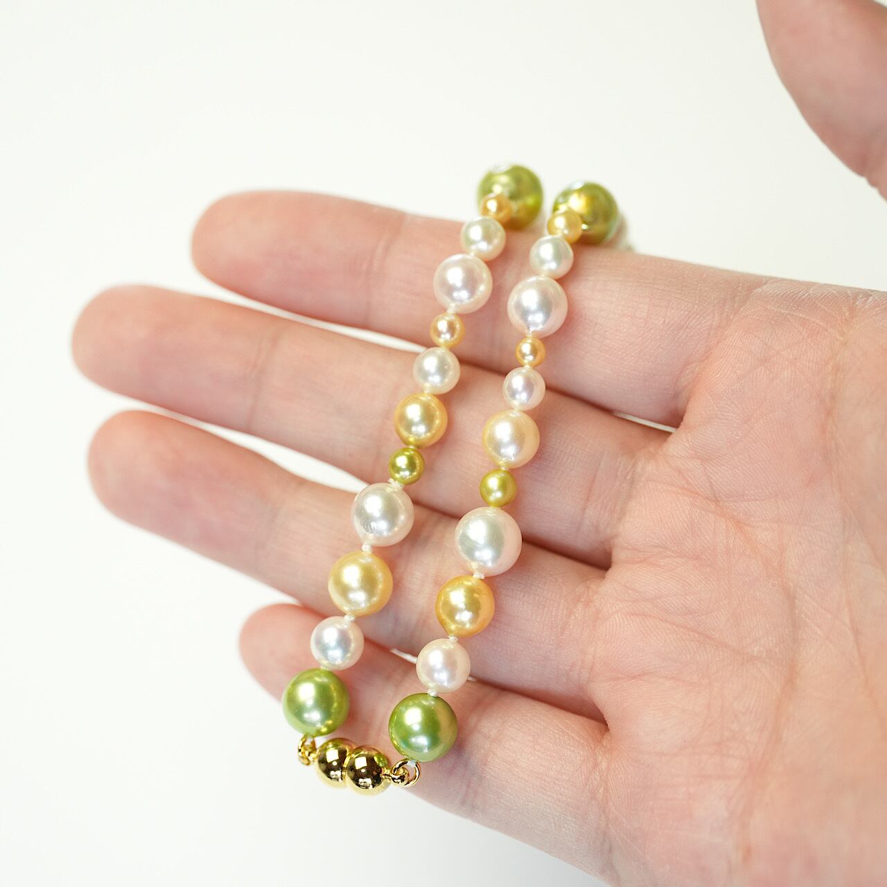 真珠のサイズはベビーパールとも呼ばれる3mmから8.5mmまで様々な大きさの真珠を一つのアイテムで楽しめるようになっています。